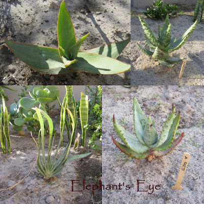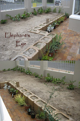 Aeonium cuttings in shady end of retaining blocks